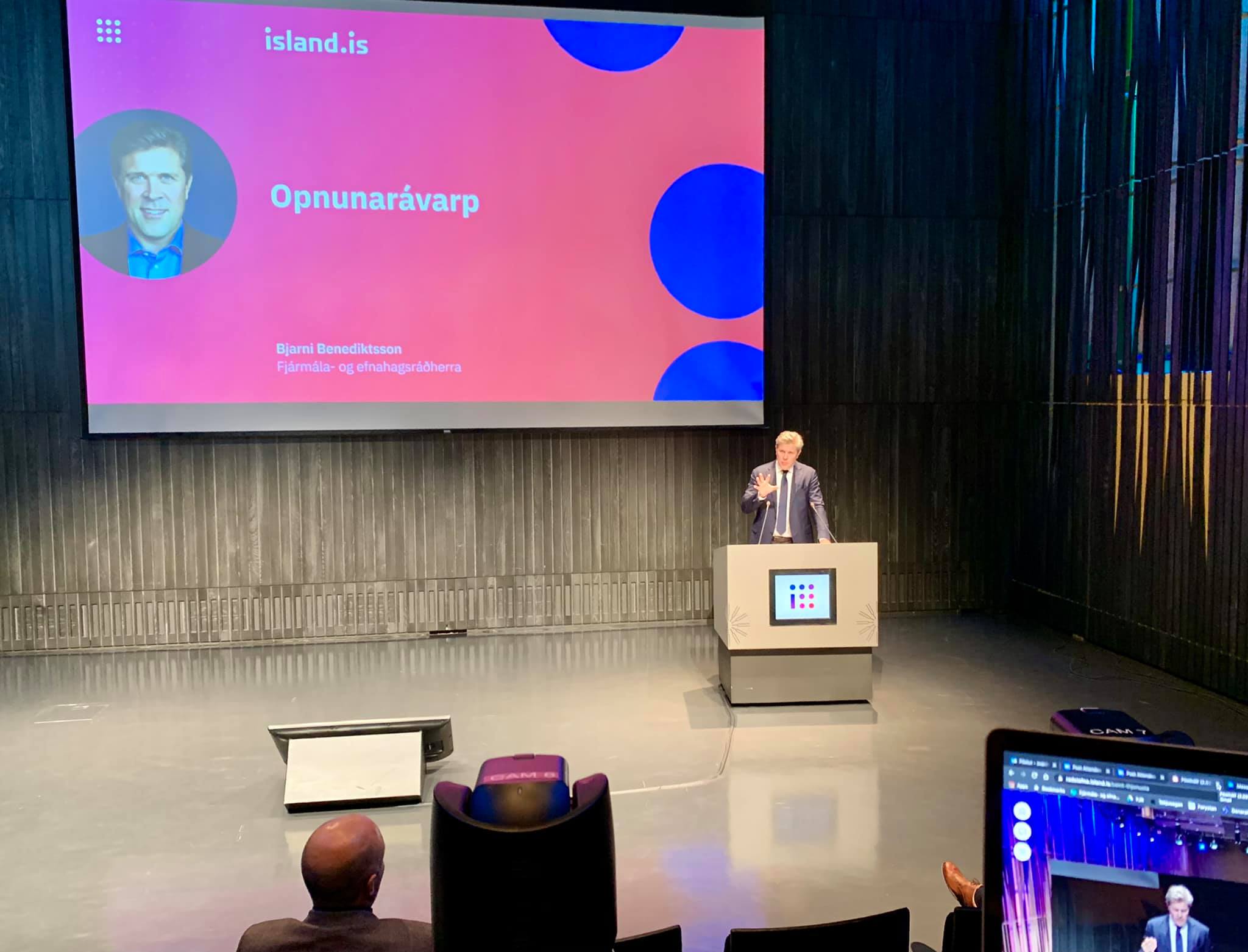 „Við erum öll komin með nóg af gamaldags viðmóti, útprentuðum eyðublöðum og bið eftir afgreiðslu. Og þetta snýst ekki bara um leiðindi og tímasóun. Það hangir fleira á spýtunni. Ég fullyrði að gamaldags og óskilvirk opinber þjónusta grefur almennt undan trausti á hinu opinbera heilt yfir. Og öfugt. Ef fólk upplifir opinbera þjónustu sem örugga, skilvirka, hraða og persónulega þá eykur það trú á opinbera kerfinu í heild,“ sagði Bjarni Benediktsson formaður Sjálfstæðisflokksins og fjármála- og efnahagsráðherra við opnun vefjarins.